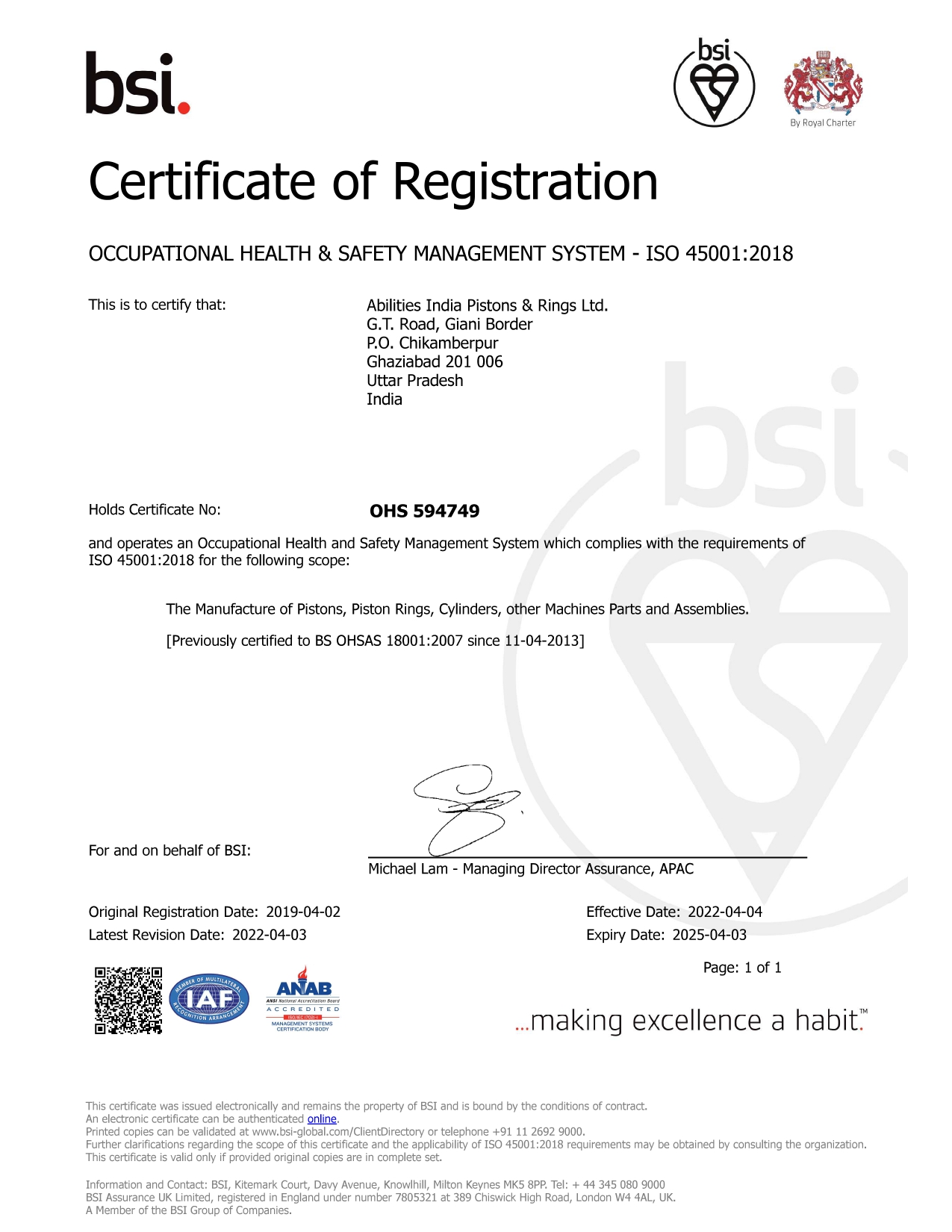 Occupational Health & Safety Management System ISO 45001:2018